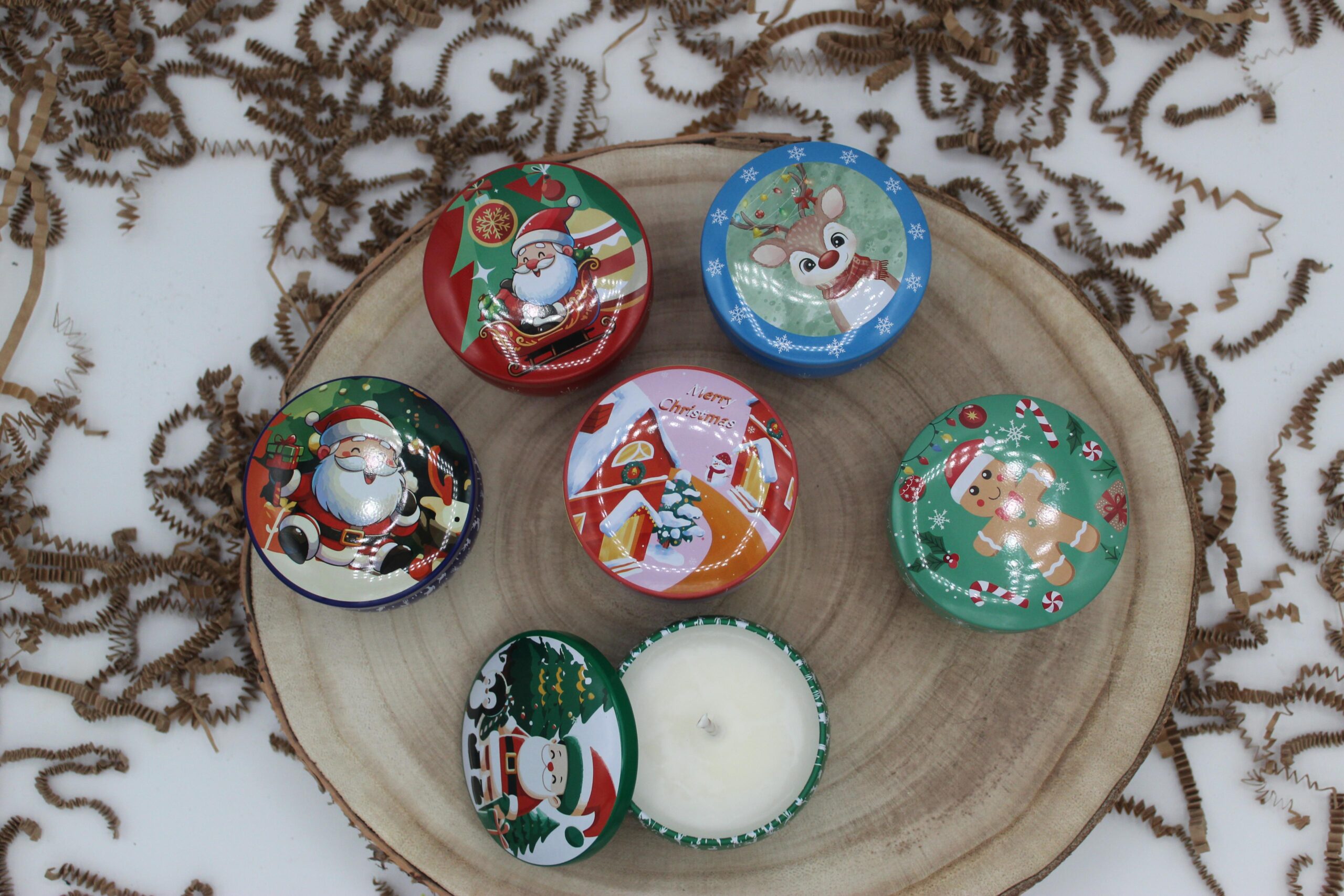 Vela en lata navideña aroma de canela y naranja. Lata al azar