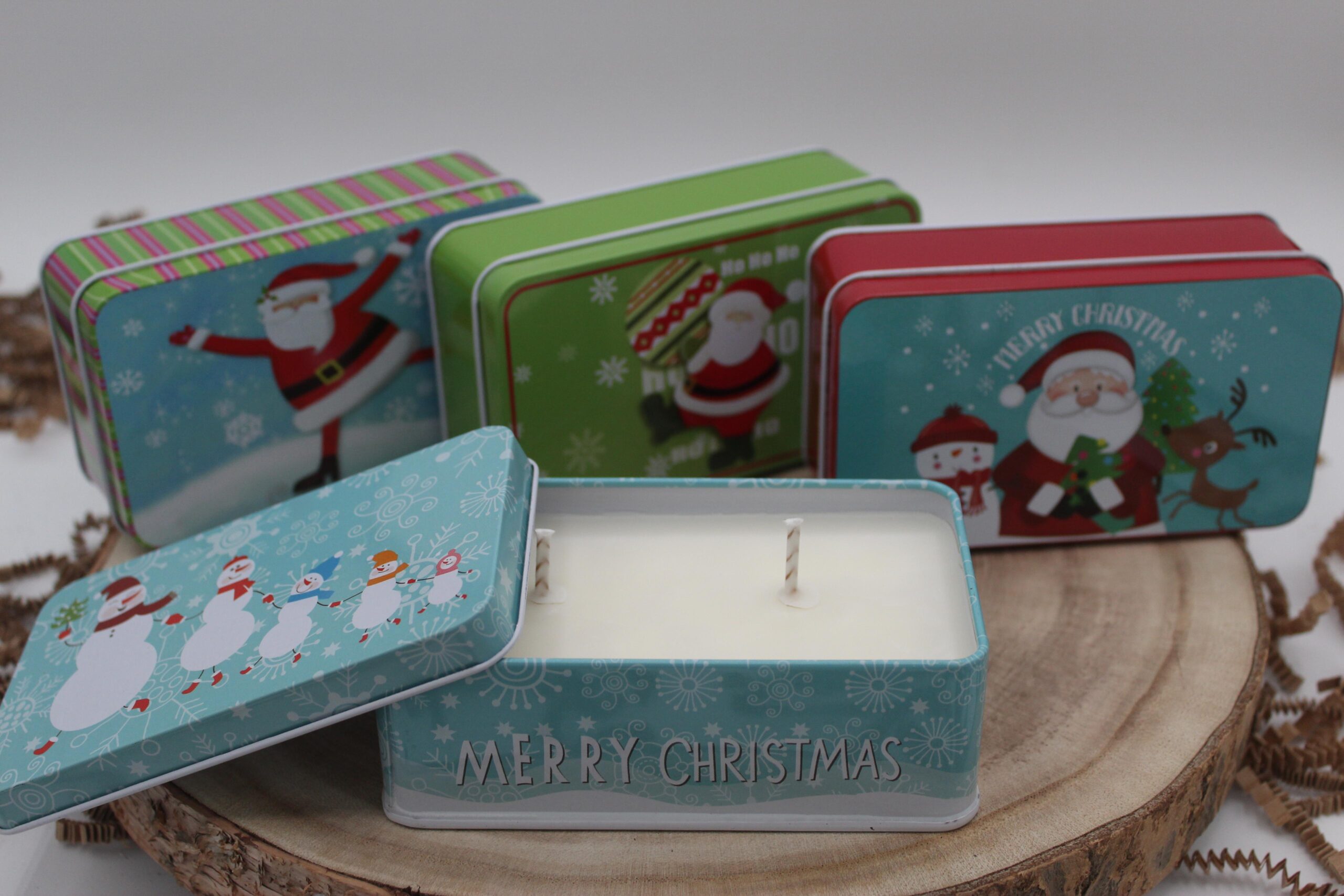 Vela en lata rectángular con aroma de panettone. Lata al azar